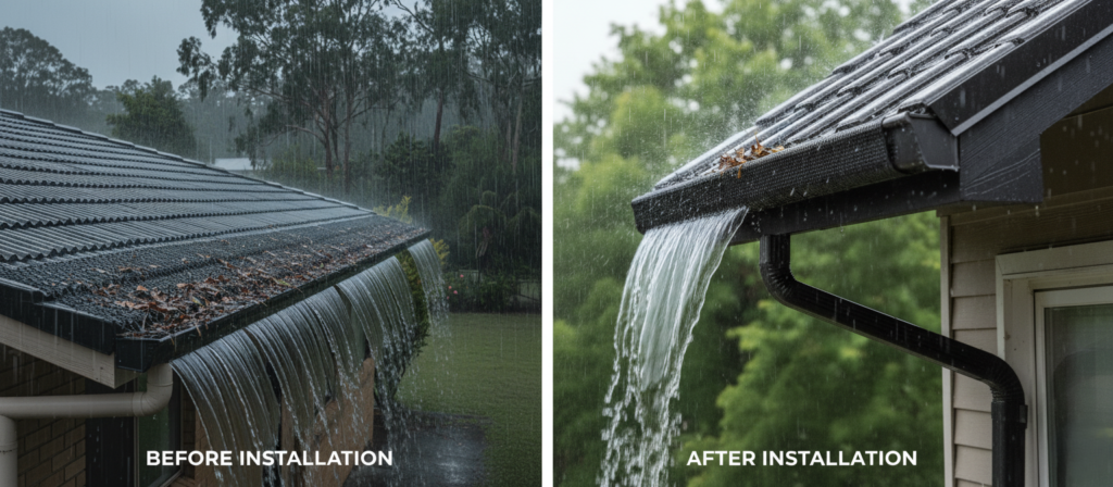 A well-installed gutter guard system prevents these issues by ensuring water is directed away efficiently, even during the heaviest downpours.
